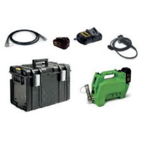 Pompa wyposażona jest w ręczne sterowanie, które daje użytkownikowi pełną kontrolę nad wykonywanymi operacjami. W zestawie znajduje się 3-metrowy wąż wysokociśnieniowy zakończony szybkozłączem HR-F, jeden akumulator RA-F19 (5,0 Ah), ładowarka LG-18 oraz praktyczna walizka transportowa.